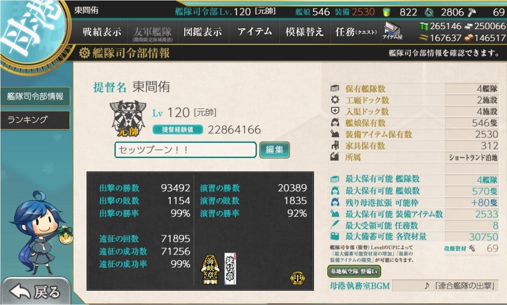 当方、2013年8月31日着任の提督です。長らく艦これにはお世話になっております。大本営には感謝の限りです。本当にありがとうございます。